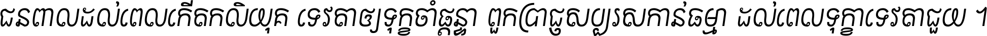 ជនពាល​ដល់​ពេល​កើត​កលិយុគ ទេវតា​ឲ្យ​ទុក្ខ​ចាំ​ផ្ដន្ទា ពួក​ប្រាជ្ញ​សប្បរស​កាន់​ធម្មា ដល់​ពេល​ទុក្ខា​ទេវតា​ជួយ ។