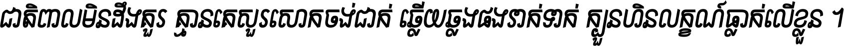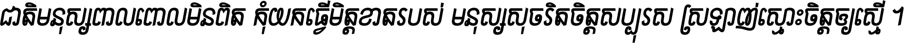 ជាតិ​មនុស្ស​ពាល​ពោល​មិន​ពិត កុំ​យក​ធ្វើ​មិត្ត​ខាត​របស់ មនុស្ស​សុចរិត​ចិត្ត​សប្បុរស ស្រឡាញ់​ស្មោះ​ចិត្ត​ឲ្យ​ស្មើ ។