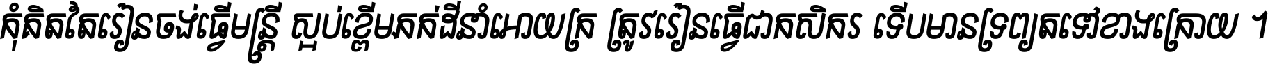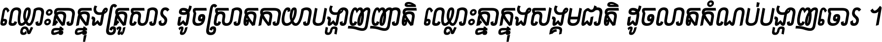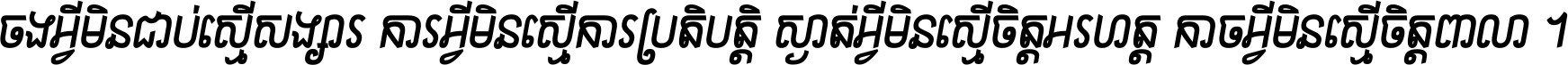 ចង​អ្វី​មិន​ជាប់​ស្មើ​សង្សារ ការ​អ្វី​មិន​ស្មើ​ការ​ប្រតិបត្តិ ស្ងាត់​អ្វី​មិន​ស្មើ​​ចិត្ត​អរហត្ត​ កាច​អ្វី​មិន​ស្មើ​ចិត្ត​ពាលា ។