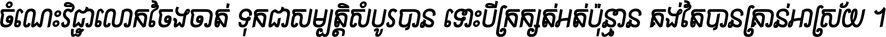 ចំណេះ​វិជ្ជា​លោក​ចែង​ចាត់ ទុក​ជា​សម្បត្តិ​សំបូរ​បាន ទោះ​បី​ក្រក្សត់​អត់​ប៉ុន្មាន គង់​តែ​បាន​គ្រាន់​អាស្រ័យ ។