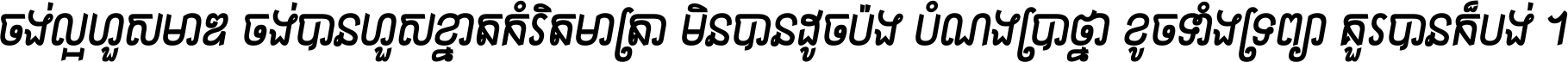 ចង់​ល្អ​ហួស​មាឌ ចង់​បាន​ហួស​ខ្នាត​កំរិត​មាត្រា មិន​បាន​ដូច​ប៉ង បំណង​ប្រាថ្នា ខូច​ទាំងទ្រព្យា គួរ​បាន​ក៏បង់ ។