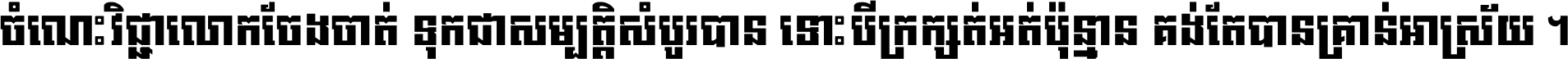 ចំណេះ​វិជ្ជា​លោក​ចែង​ចាត់ ទុក​ជា​សម្បត្តិ​សំបូរ​បាន ទោះ​បី​ក្រក្សត់​អត់​ប៉ុន្មាន គង់​តែ​បាន​គ្រាន់​អាស្រ័យ ។