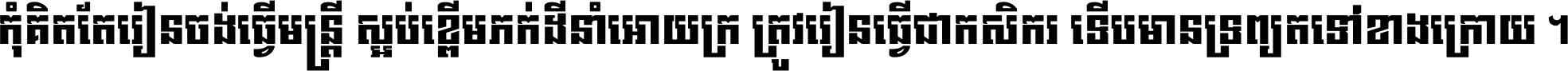 កុំ​គិត​តែ​រៀន​ចង់ធ្វើ​មន្ត្រី ស្អប់​ខ្ពើម​ភក់ដី​នាំអោយ​ក្រ ត្រូវ​រៀន​ធ្វើ​ជា​កសិករ ទើប​មានទ្រព្យ​ត​ទៅ​ខាង​ក្រោយ ។