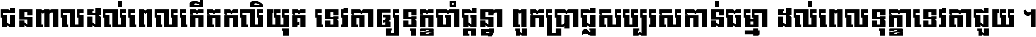 ជនពាល​ដល់​ពេល​កើត​កលិយុគ ទេវតា​ឲ្យ​ទុក្ខ​ចាំ​ផ្ដន្ទា ពួក​ប្រាជ្ញ​សប្បរស​កាន់​ធម្មា ដល់​ពេល​ទុក្ខា​ទេវតា​ជួយ ។