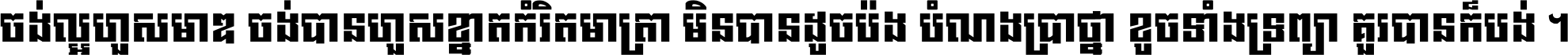 ចង​អ្វី​មិន​ជាប់​ស្មើ​សង្សារ ការ​អ្វី​មិន​ស្មើ​ការ​ប្រតិបត្តិ ស្ងាត់​អ្វី​មិន​ស្មើ​​ចិត្ត​អរហត្ត​ កាច​អ្វី​មិន​ស្មើ​ចិត្ត​ពាលា ។