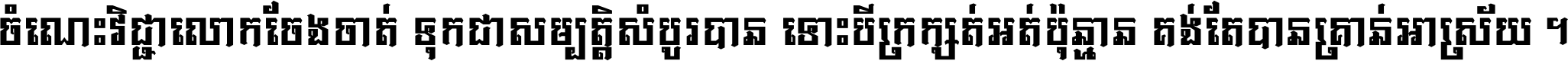 ចំណេះ​វិជ្ជា​លោក​ចែង​ចាត់ ទុក​ជា​សម្បត្តិ​សំបូរ​បាន ទោះ​បី​ក្រក្សត់​អត់​ប៉ុន្មាន គង់​តែ​បាន​គ្រាន់​អាស្រ័យ ។