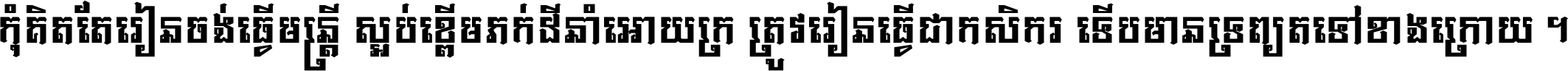 កុំ​គិត​តែ​រៀន​ចង់ធ្វើ​មន្ត្រី ស្អប់​ខ្ពើម​ភក់ដី​នាំអោយ​ក្រ ត្រូវ​រៀន​ធ្វើ​ជា​កសិករ ទើប​មានទ្រព្យ​ត​ទៅ​ខាង​ក្រោយ ។