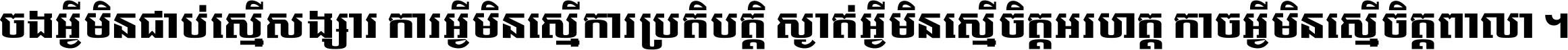 ចង​អ្វី​មិន​ជាប់​ស្មើ​សង្សារ ការ​អ្វី​មិន​ស្មើ​ការ​ប្រតិបត្តិ ស្ងាត់​អ្វី​មិន​ស្មើ​​ចិត្ត​អរហត្ត​ កាច​អ្វី​មិន​ស្មើ​ចិត្ត​ពាលា ។