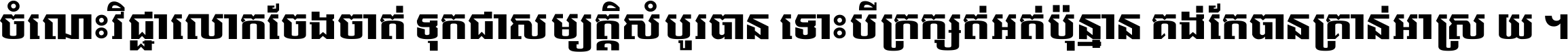 ចំណេះ​វិជ្ជា​លោក​ចែង​ចាត់ ទុក​ជា​សម្បត្តិ​សំបូរ​បាន ទោះ​បី​ក្រក្សត់​អត់​ប៉ុន្មាន គង់​តែ​បាន​គ្រាន់​អាស្រ័យ ។