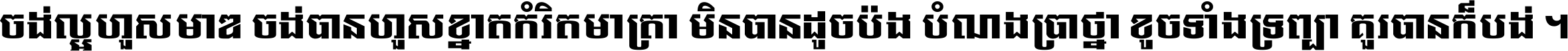 ចង់​ល្អ​ហួស​មាឌ ចង់​បាន​ហួស​ខ្នាត​កំរិត​មាត្រា មិន​បាន​ដូច​ប៉ង បំណង​ប្រាថ្នា ខូច​ទាំងទ្រព្យា គួរ​បាន​ក៏បង់ ។