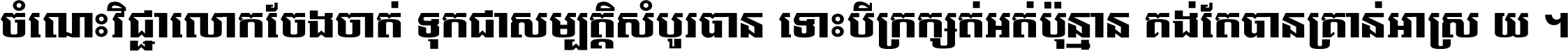 ចំណេះ​វិជ្ជា​លោក​ចែង​ចាត់ ទុក​ជា​សម្បត្តិ​សំបូរ​បាន ទោះ​បី​ក្រក្សត់​អត់​ប៉ុន្មាន គង់​តែ​បាន​គ្រាន់​អាស្រ័យ ។