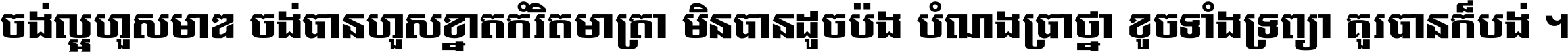 ចង​អ្វី​មិន​ជាប់​ស្មើ​សង្សារ ការ​អ្វី​មិន​ស្មើ​ការ​ប្រតិបត្តិ ស្ងាត់​អ្វី​មិន​ស្មើ​​ចិត្ត​អរហត្ត​ កាច​អ្វី​មិន​ស្មើ​ចិត្ត​ពាលា ។
