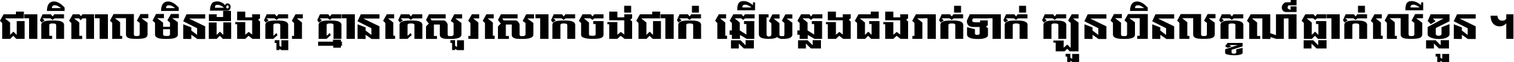 ជាតិ​ពាល​មិន​ដឹង​គួរ គ្មាន​គេ​សួរ​សោក​ចង់​ជាក់ ឆ្លើយ​ឆ្លង​ផង​រាក់​ទាក់​ ក្បួន​ហិន​លក្ខណ៍​ធ្លាក់​លើ​ខ្លួន ។