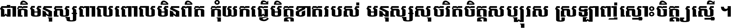 ជាតិ​មនុស្ស​ពាល​ពោល​មិន​ពិត កុំ​យក​ធ្វើ​មិត្ត​ខាត​របស់ មនុស្ស​សុចរិត​ចិត្ត​សប្បុរស ស្រឡាញ់​ស្មោះ​ចិត្ត​ឲ្យ​ស្មើ ។