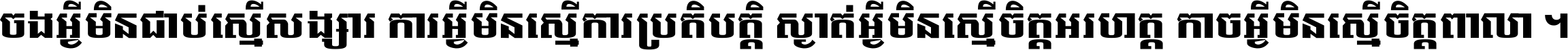 ចង​អ្វី​មិន​ជាប់​ស្មើ​សង្សារ ការ​អ្វី​មិន​ស្មើ​ការ​ប្រតិបត្តិ ស្ងាត់​អ្វី​មិន​ស្មើ​​ចិត្ត​អរហត្ត​ កាច​អ្វី​មិន​ស្មើ​ចិត្ត​ពាលា ។