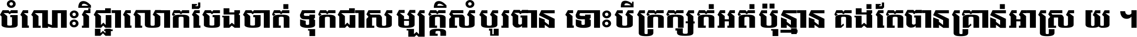 ចំណេះ​វិជ្ជា​លោក​ចែង​ចាត់ ទុក​ជា​សម្បត្តិ​សំបូរ​បាន ទោះ​បី​ក្រក្សត់​អត់​ប៉ុន្មាន គង់​តែ​បាន​គ្រាន់​អាស្រ័យ ។