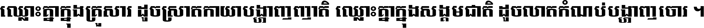 ឈ្លោះ​គ្នា​ក្នុង​គ្រួសារ ដូច​ស្រាត​កាយា​បង្ហាញ​ញាតិ ឈ្លោះគ្នាក្នុង​សង្គមជាតិ ដូច​លាត​កំណប់​បង្ហាញ​ចោរ ។