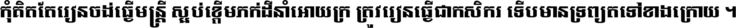 កុំ​គិត​តែ​រៀន​ចង់ធ្វើ​មន្ត្រី ស្អប់​ខ្ពើម​ភក់ដី​នាំអោយ​ក្រ ត្រូវ​រៀន​ធ្វើ​ជា​កសិករ ទើប​មានទ្រព្យ​ត​ទៅ​ខាង​ក្រោយ ។