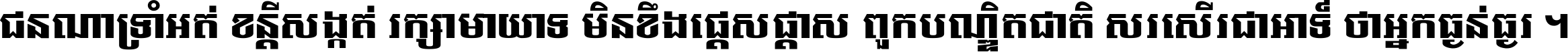 ជនណា​ទ្រាំអត់ ខន្តី​សង្កត់ រក្សា​មាយាទ មិន​ខឹង​ផ្ដេសផ្ដាស ពួក​បណ្ឌិតជាតិ សរសើរ​ជា​អាទ៍ ថា​អ្នក​ធ្ងន់​ធ្ងរ ។