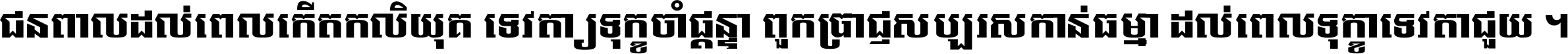 ជនពាល​ដល់​ពេល​កើត​កលិយុគ ទេវតា​ឲ្យ​ទុក្ខ​ចាំ​ផ្ដន្ទា ពួក​ប្រាជ្ញ​សប្បរស​កាន់​ធម្មា ដល់​ពេល​ទុក្ខា​ទេវតា​ជួយ ។